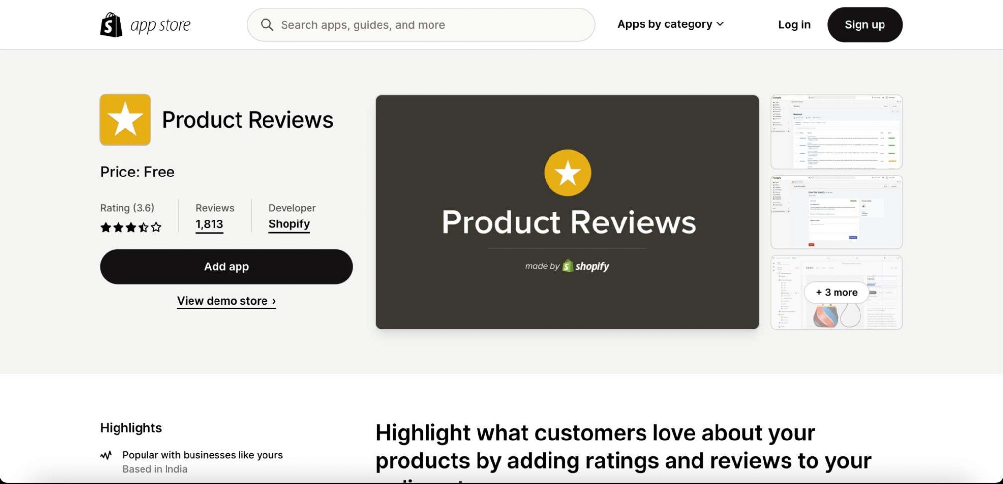 Now, if you don’t need any premium apps, you can do just fine with the free ones, such as Shopify’s review app.