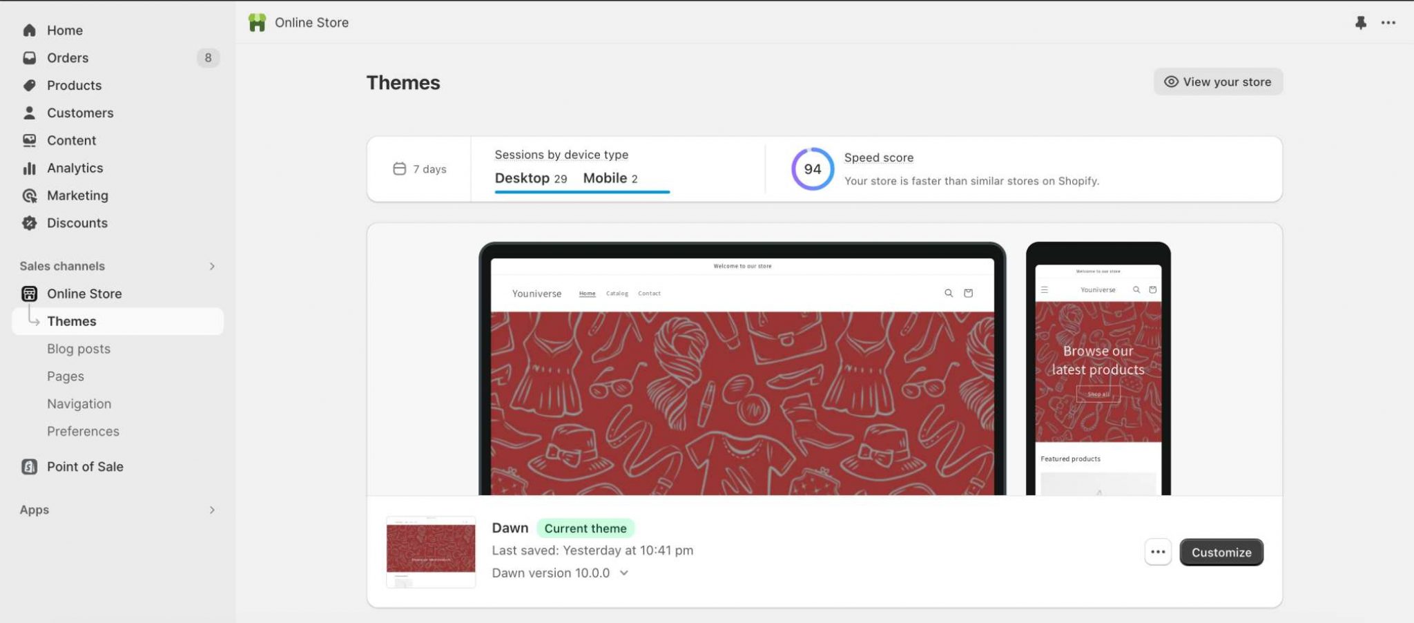 Navigate to the Online Store from the menu on the left side of your screen, and select Themes.
