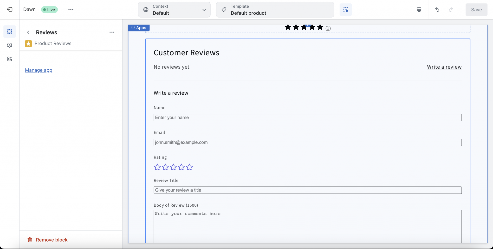 Adding reviews to your Shopify product page is not just a matter of installing the app. You must integrate a new block in your theme editor to make real-time store customizations. Here’s how: