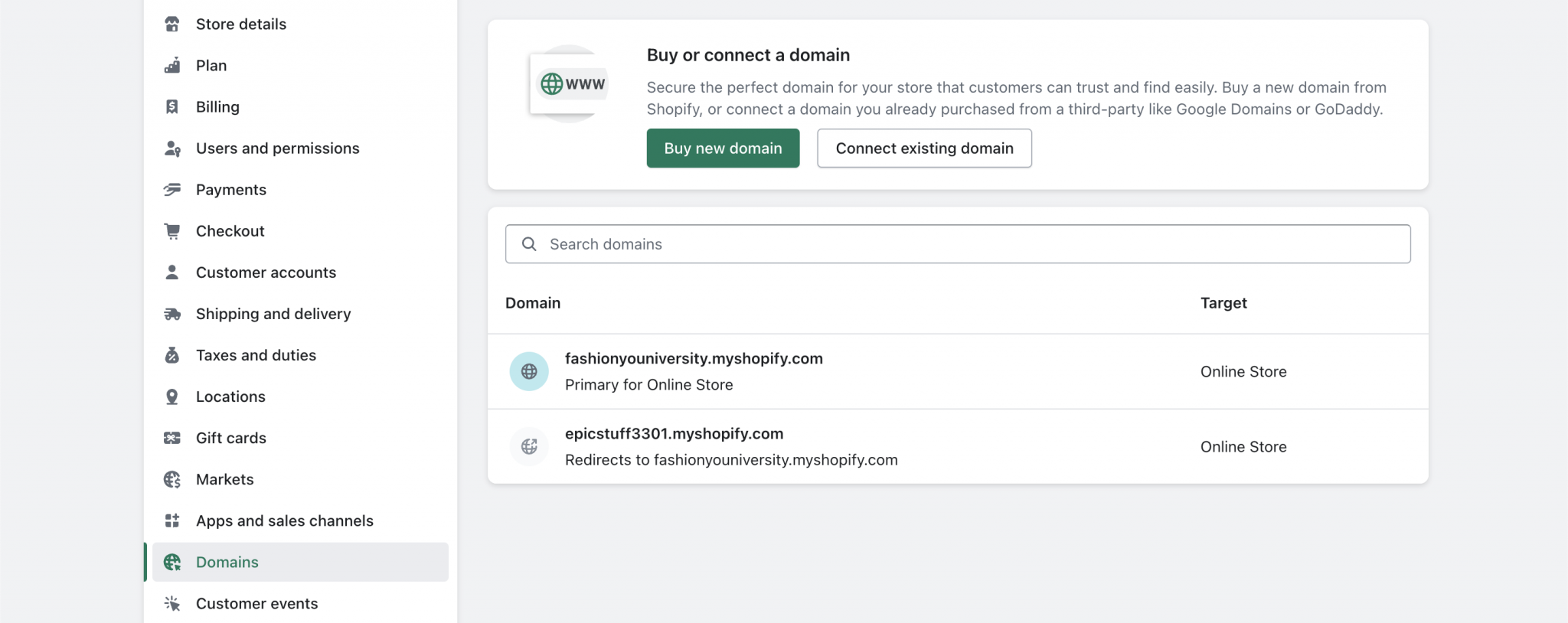 If done correctly, you’ll find the new store name when you go to Settings>Domain>Your new domain name.