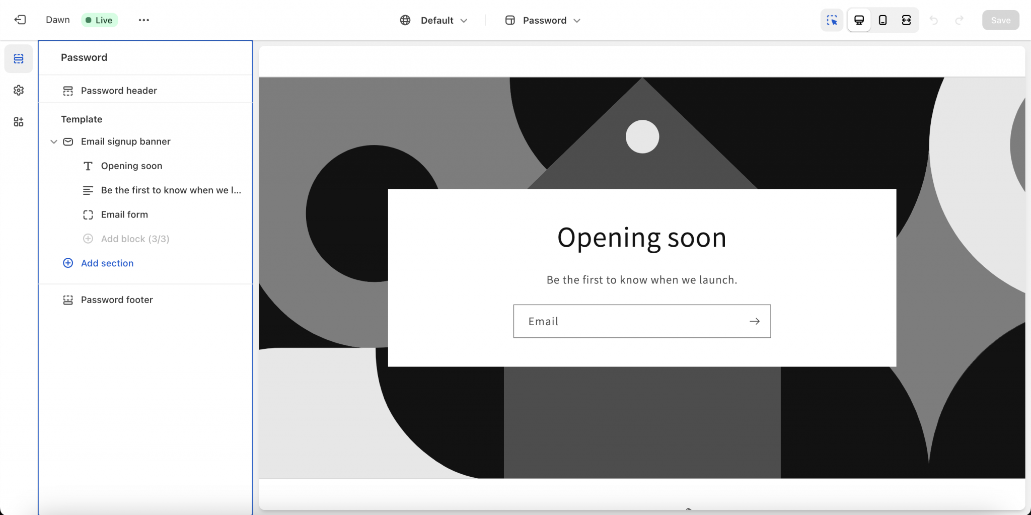 However, here’s how you can edit your password page to create a coming soon page on Shopify in your active Shopify theme: