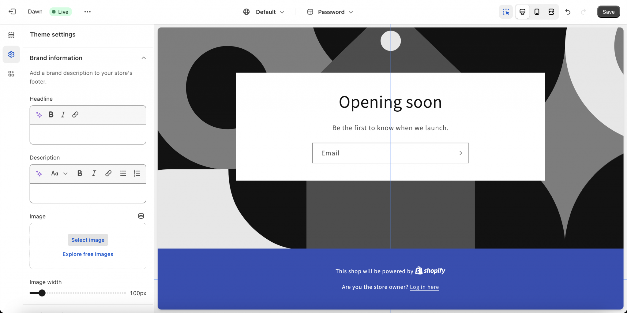 Since we’re using Shopify’s default theme – Dawn, here’s how a password page can be used to create an effective Coming Soon page on Shopify quickly: