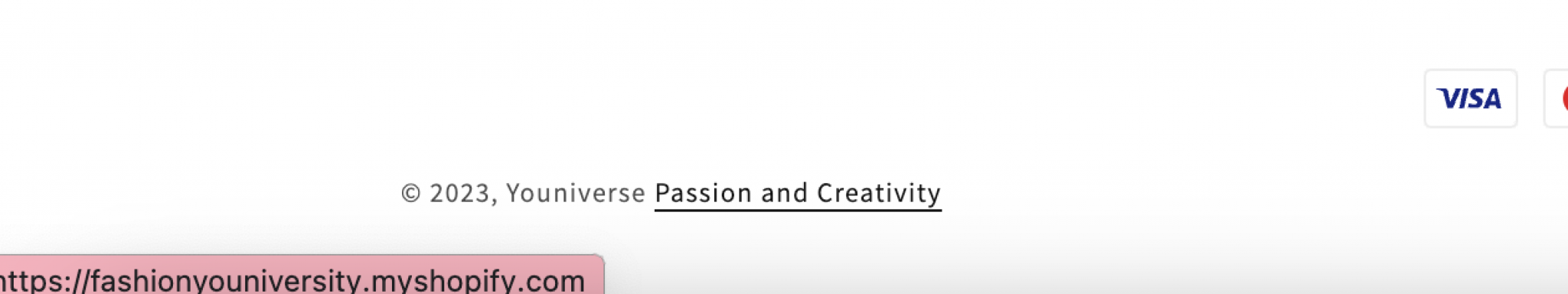 For instance, we’ve changed the default text – ‘powered by Shopify’ to ‘Passion and Creativity’. Clicking on the text will lead you towards our brand’s mission and story to build trust in our audience.