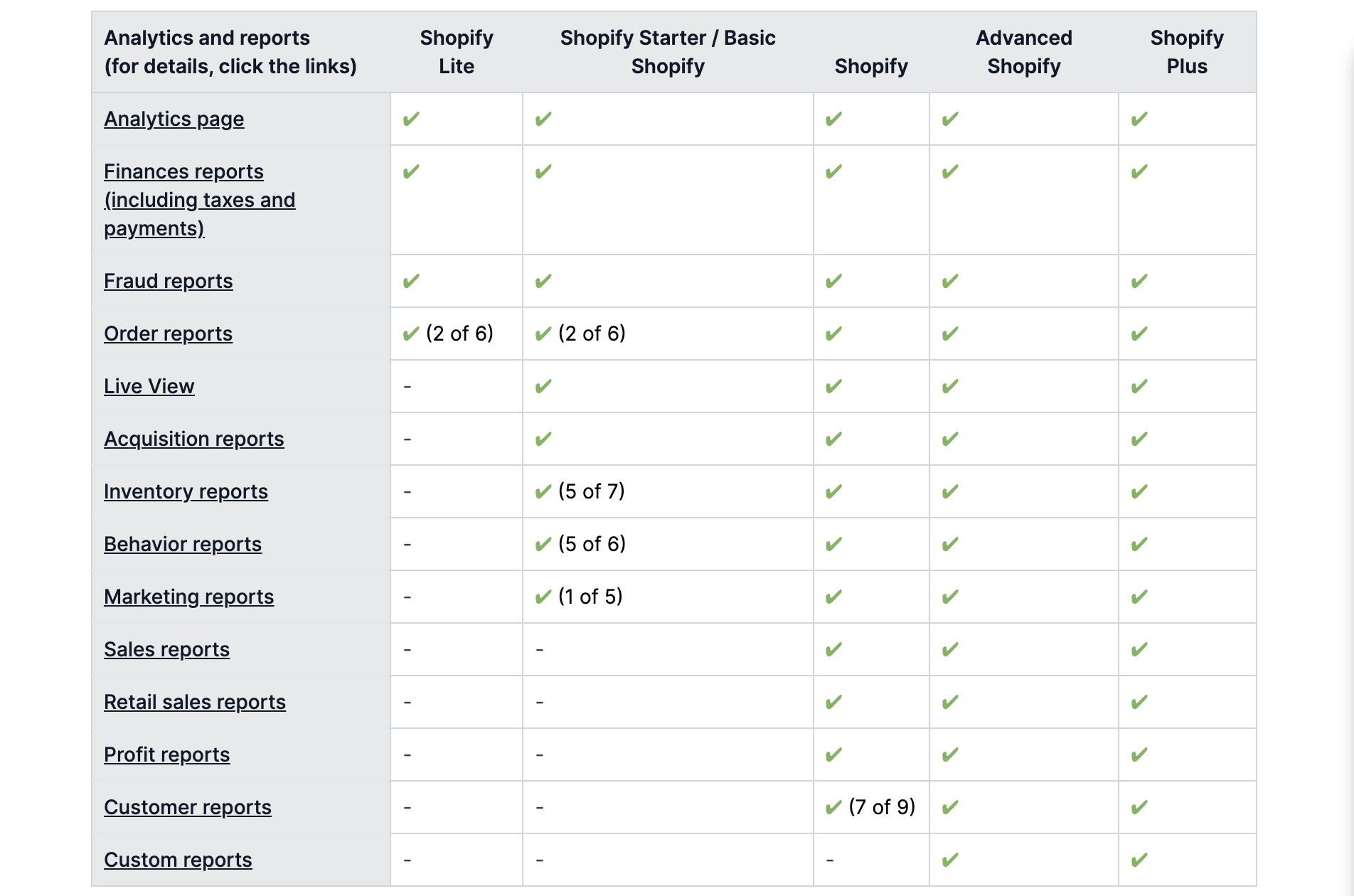 Suppose you’re using a basic Shopify plan; you’re limited to using basic Shopify Analytics reports unless you pay an extra $79 for Standard Shopify reports. Whereas only Shopify Plus users have access to more in-depth eCommerce reports.