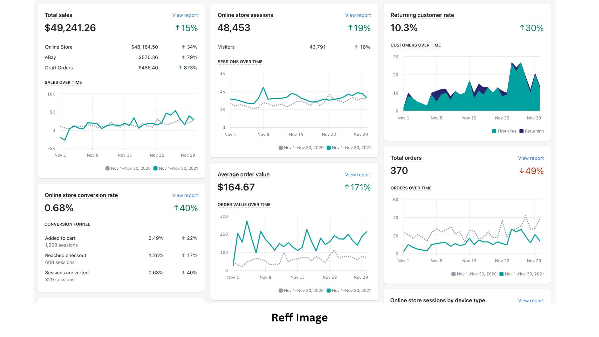 Shopify Analytics provides an easy-to-use interface explicitly made for Shopify users, and these essential metrics are available within the Shopify dashboard for business.