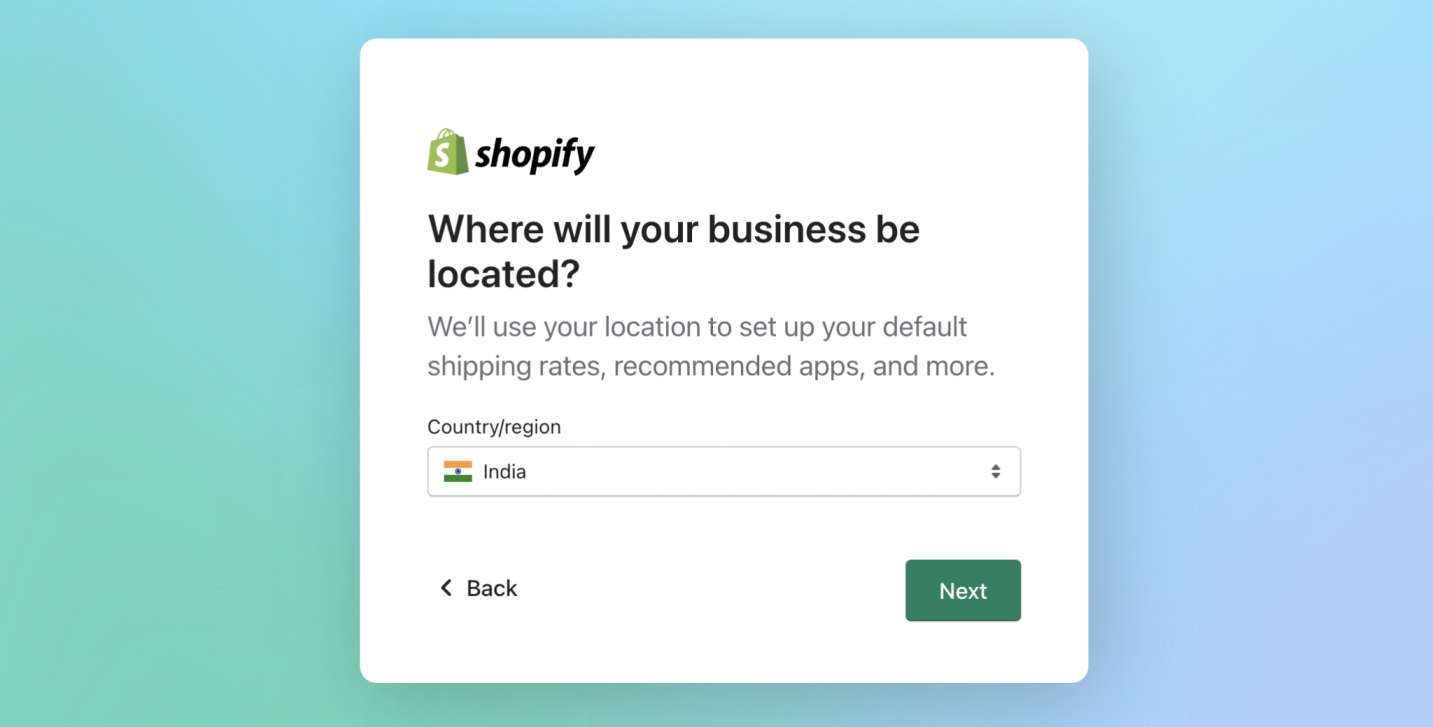 Now set your store location so Shopify can calculate the default shipping rates and recommendations to get the best out of your store.