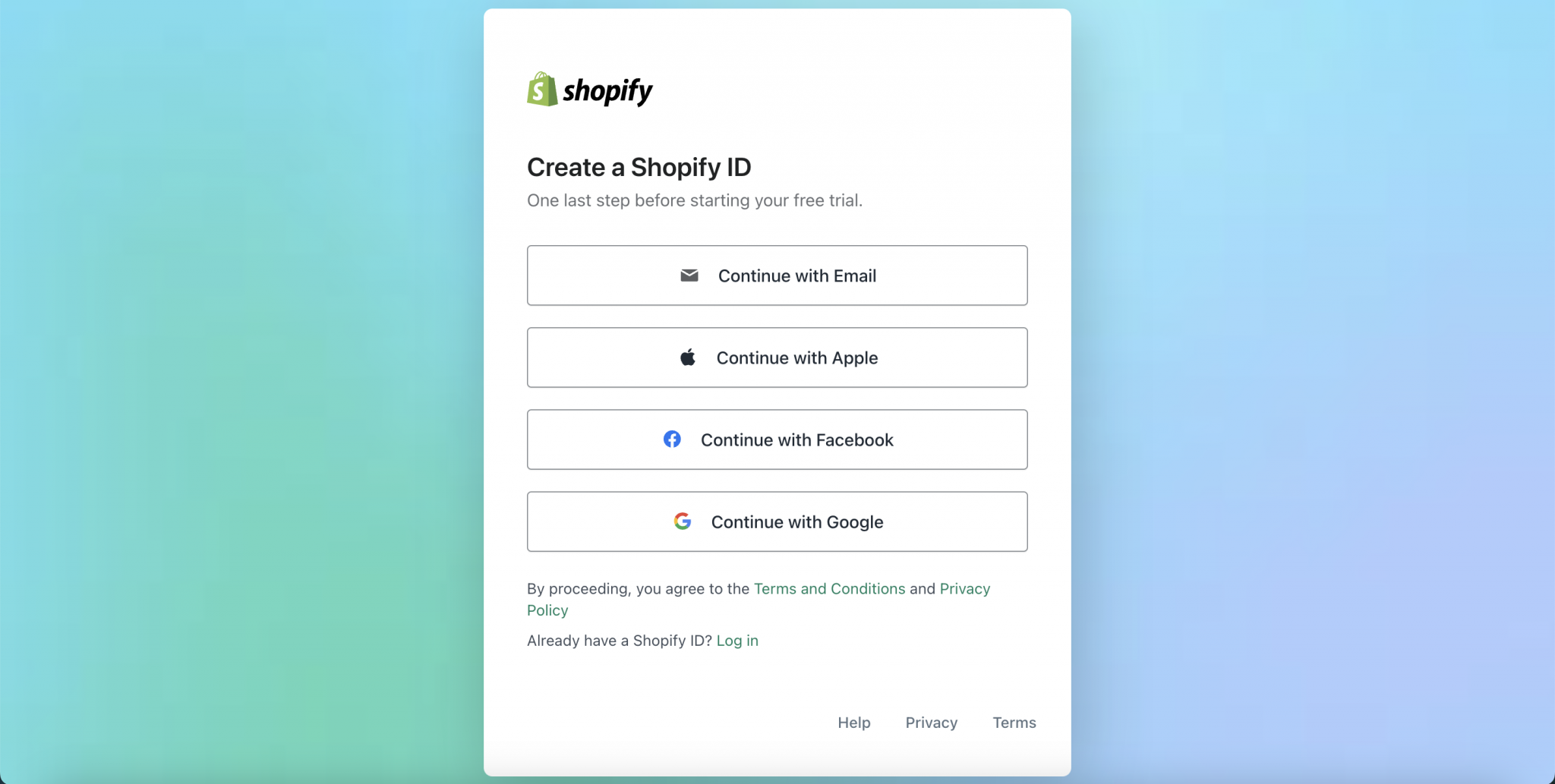 If you haven't set up your Shopify store yet, you can go ahead and start your journey by following the steps below: