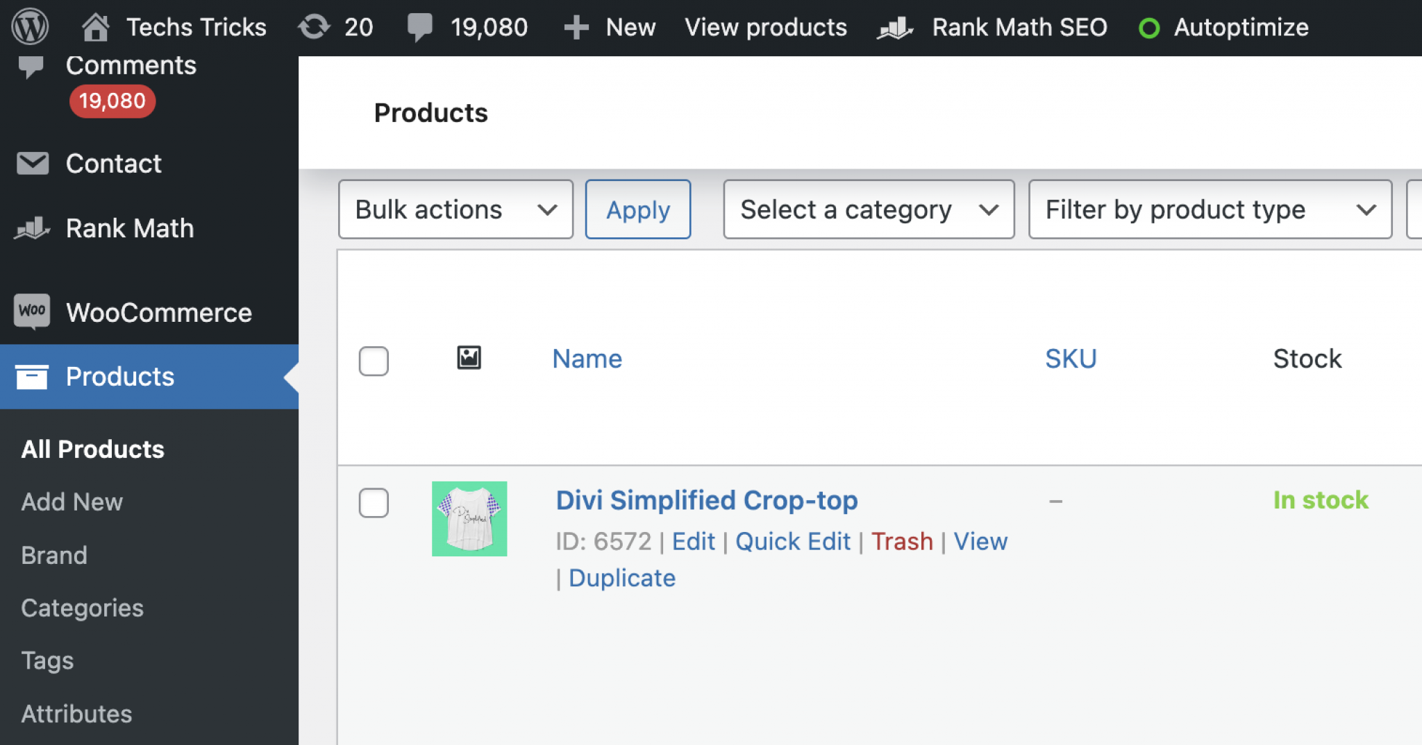 Open your existing WooCommerce store, navigate to the Admin Panel, and click the Products section.