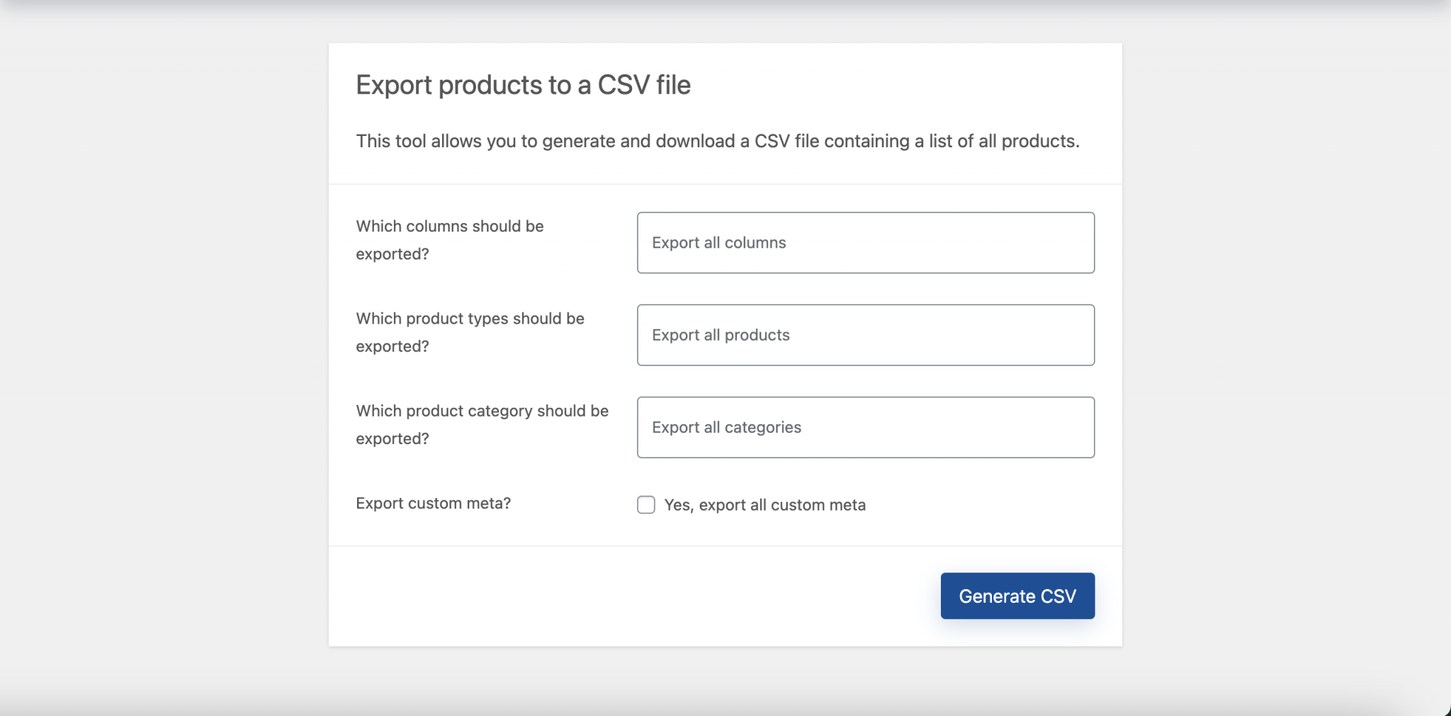After ensuring all the products are selected, you can click on ‘Generate CSV‘ to download the file in CSV format.