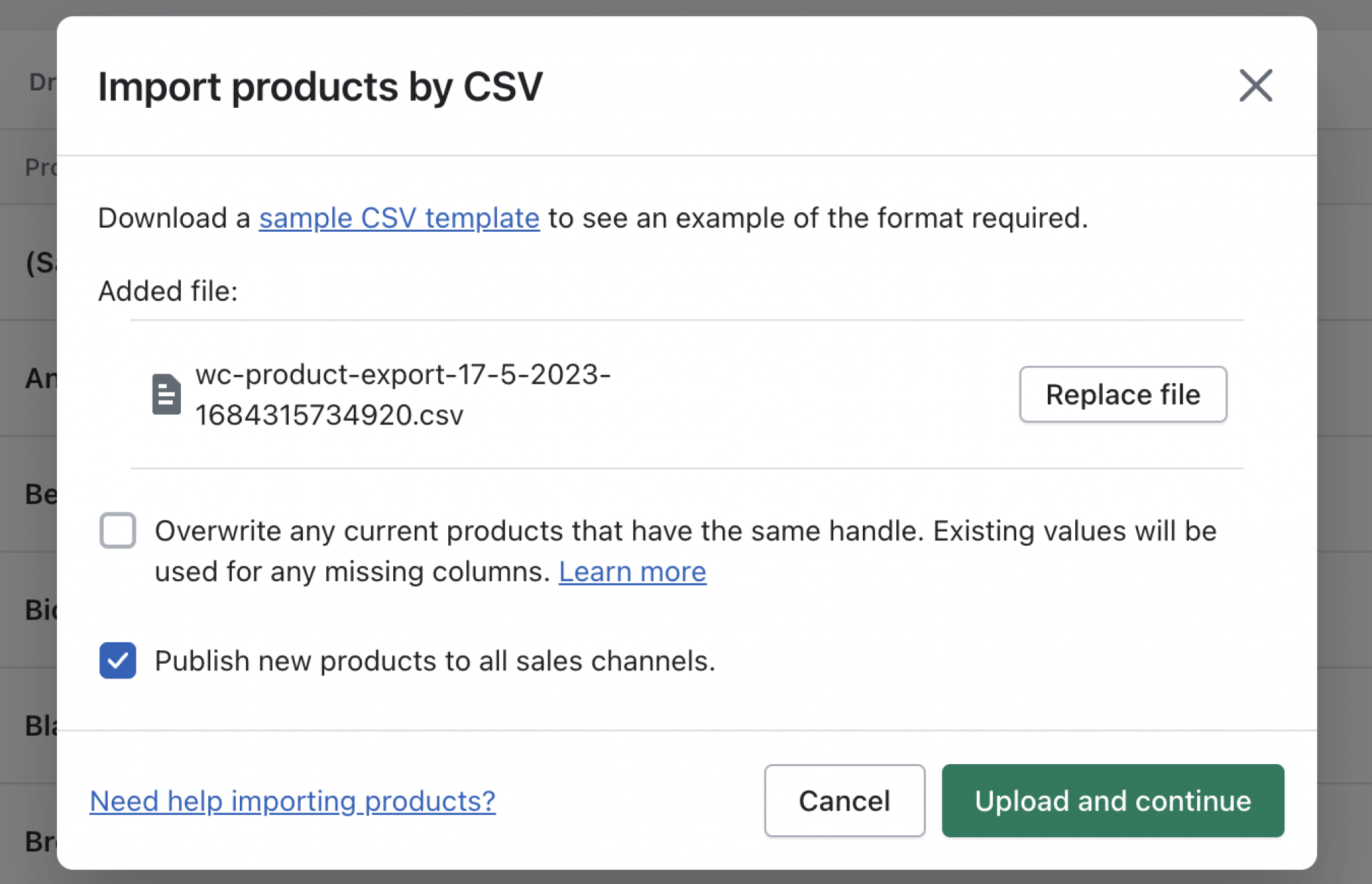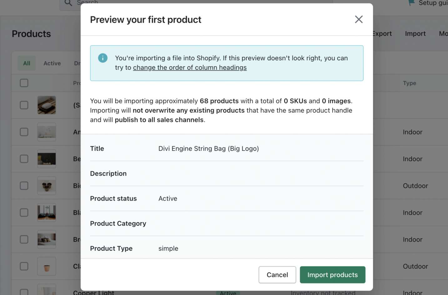 You can also preview your products to ensure you’re on the right page as intended. Hit Import products for the next step.