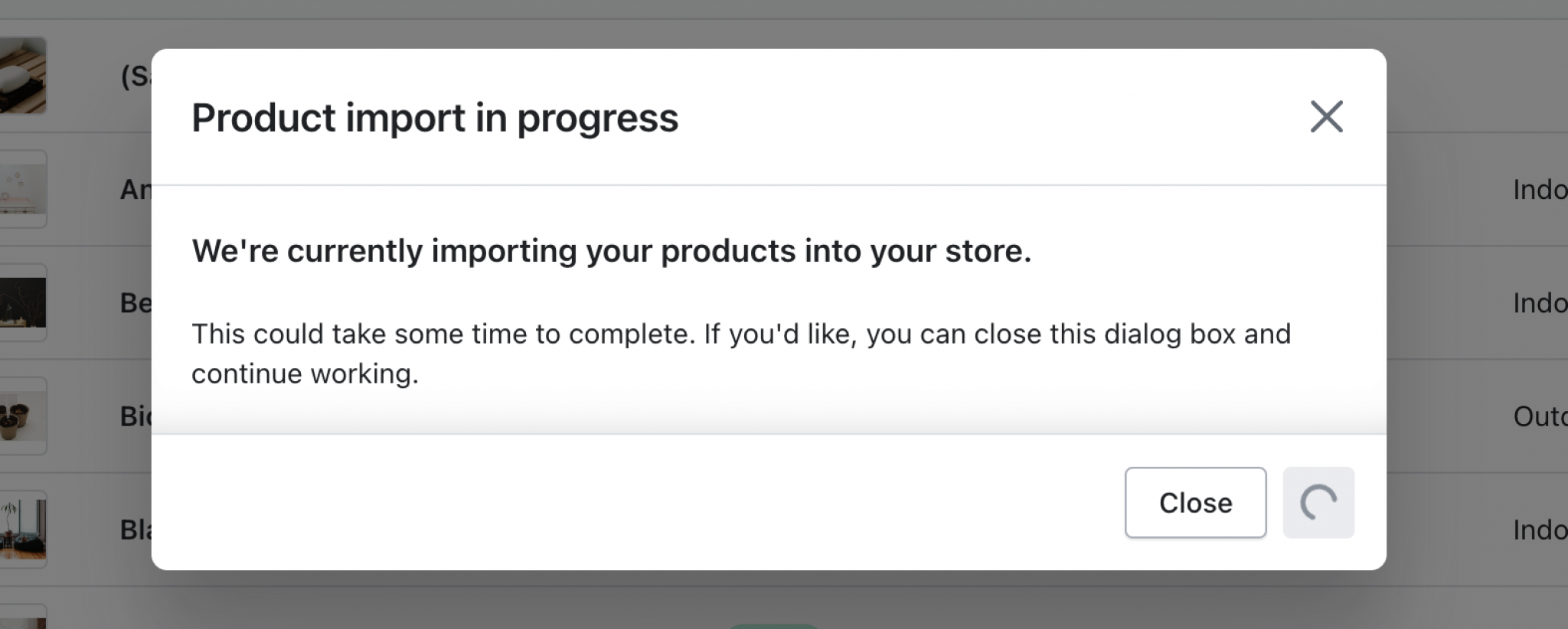 As soon as you hit Import, the products will start importing automatically to the store, as this may take a while as per the size of your product; you’ll see all of your data on your Shopify store when done.