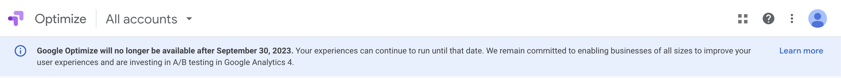 IMPORTANT NOTE: Google Optimize and Optimize 360 will sunset by the end of September, i.e., 30th September 2023, and will no longer be available for experiments.