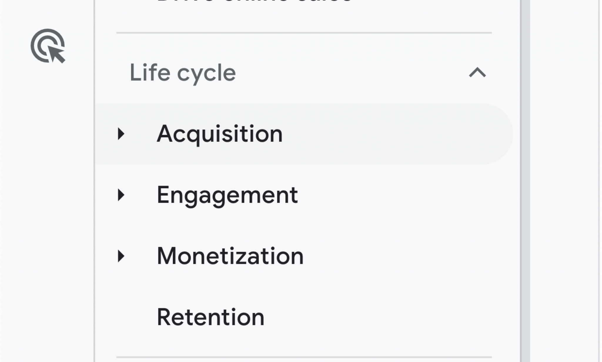 In the reports section, you’ll be provided with a few options to select Life cycle and then Acquisition.