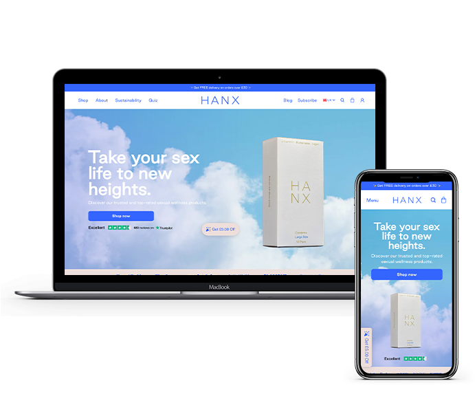 Project detailsHanx is a UK-based brand that creates vegan-friendly and cruelty-free condoms. Hanx's mission is to provide high-quality and sustainable intimate products that are better for people and the planet.Hanx approached us to develop a custom Shopify app for their online store and improve the cart development on their website.